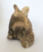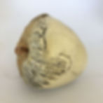 David is from Northern California. His specialty is saggar fired pottery, which involves creating a firing chamber for each piece. The results are similar to the chaotic randomness of raku, but not as violent. Each piece could be streaked with smudges, flashes of color and a smoky texture, all on a satiny surface. This is a selection of his rattles. And they look like squashes, fruits and gourds. Neat.